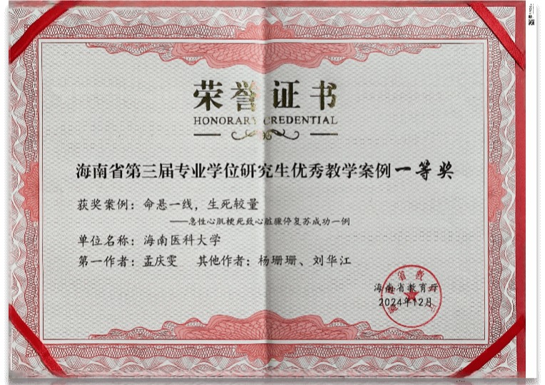 教育部学位与研究生教育发展中心专业学位案例中心是国内权威的研究生教育资源平台,入选案例需经过学科专家多重考核,代表国内专业学位案例的最高标准。此次入选的案例通过情景预设、问题引导等模式,帮助学生掌握胸痛中心标准化流程、心肺复苏高级生命支持及急危重症多学科协同救治能力。该案例的成功入库,为医学研究生培养提供了高质量教学资源。