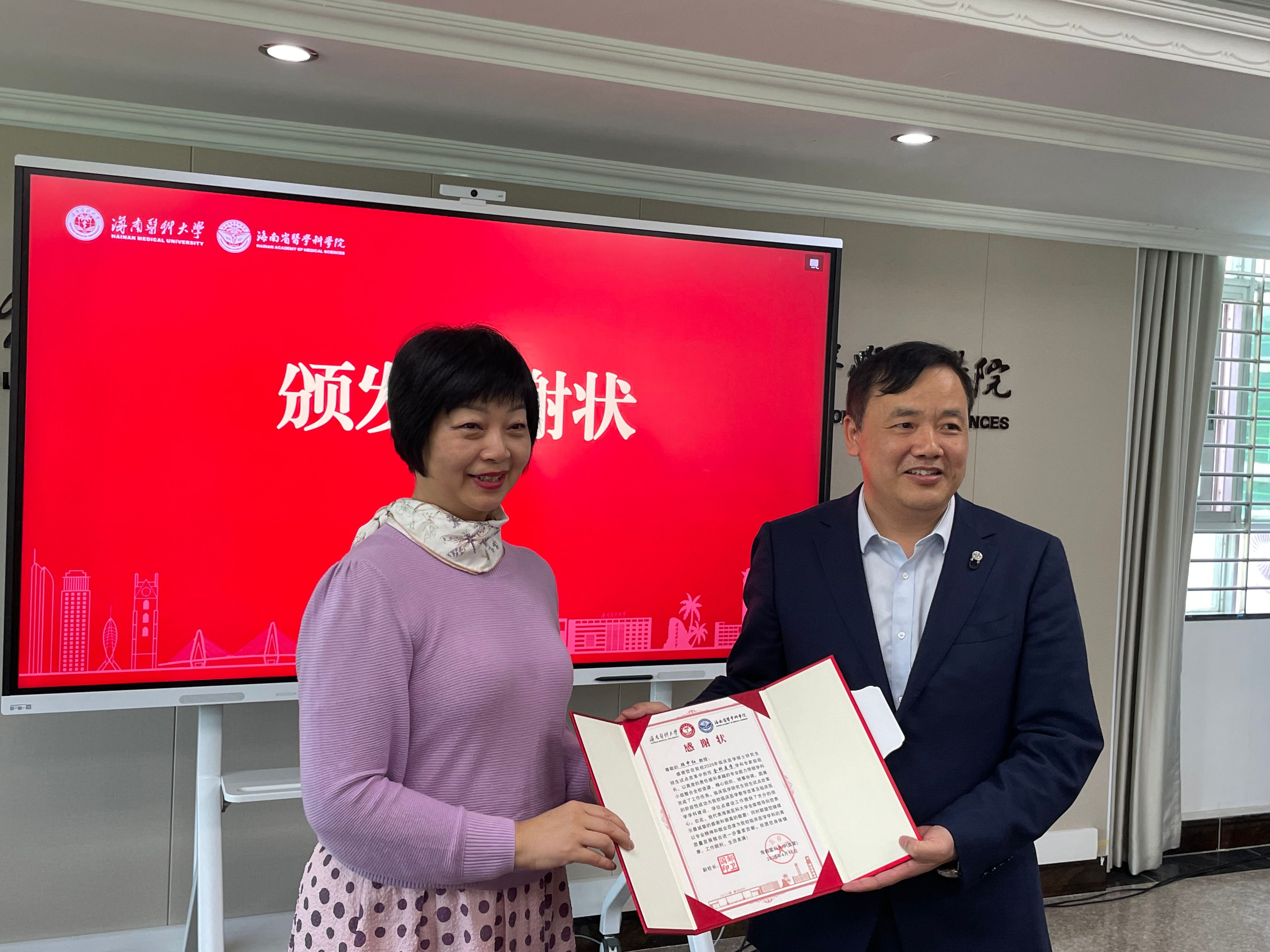 邹卫国副校长为参会临床医学各二级学科组组长颁发感谢状
