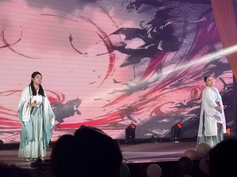 为缓解紧张的赛事氛围,中场环节准备了精彩纷呈的表演。古典舞《入画江南》率先登场,舞者水袖轻扬、身姿曼妙,将江南水乡的温婉雅致展现得淋漓尽致;随后的女团舞《是秘密啊》画风一转,元气甜美的舞蹈搭配轻快灵动的旋律,瞬间将现场氛围再次推向高潮;说唱节目《仁义茶楼》压轴亮相,说唱者以铿锵有力的节奏、态度鲜明的歌词传递独特立场,硬核的表演让台下掌声、欢呼声响成一片。