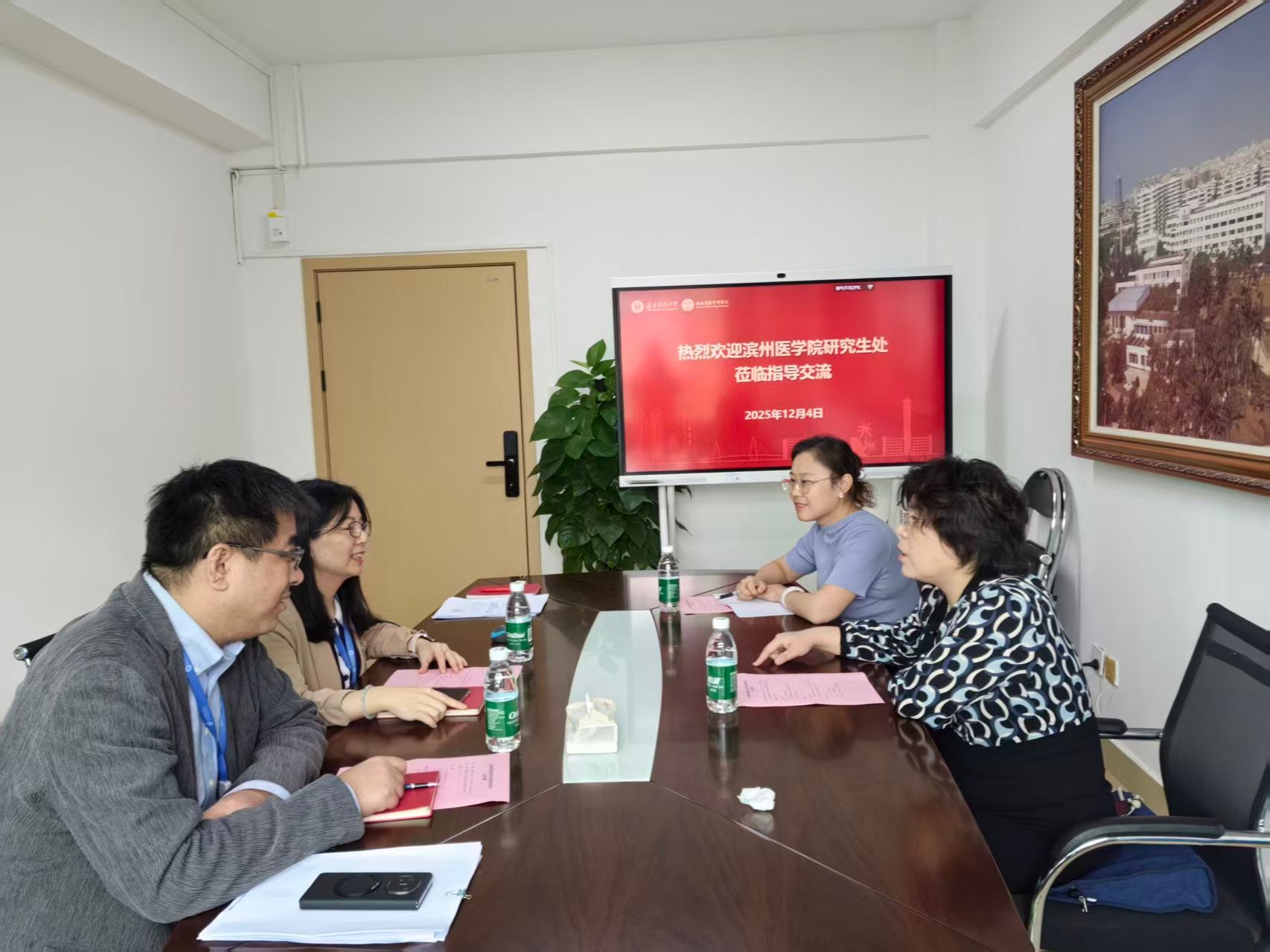 2025年12月4日上午,滨州医学院研究生处处长、学科建设办公室主任张璐萍一行到访taptap点点官网研究生院,就学科建设、博士点培育等议题开展交流座谈。座谈会在taptap点点官网城西校区文墀楼305会议室举行,由taptap点点官网研究生院院长张帆主持。