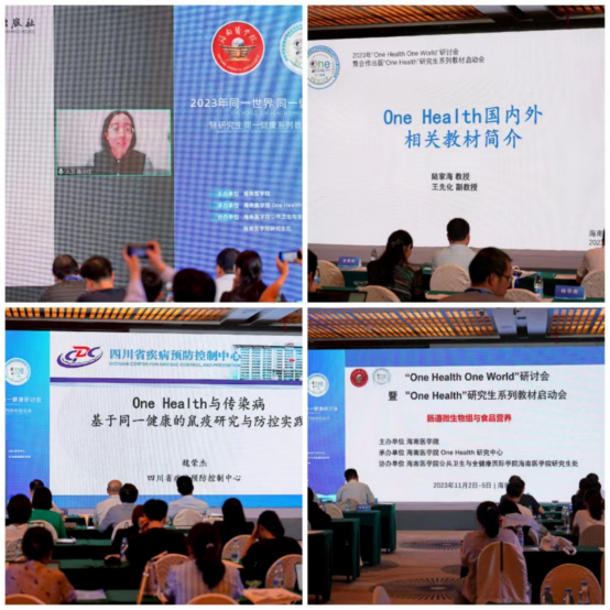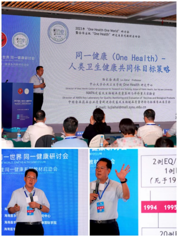 海南医学院全健康研究中心主任陆家海教授作为大会执行主席,进行了题为“同一健康(One Health)-人类健康共同体目标策略”的主旨报告。他提出,当前人类健康正面临包括新发传染病、环境变化、抗生素耐药以及食源性疾病等的共同挑战,亟需One Health策略来应对。同时,陆教授还对One Health的起源和发展作了介绍,并阐述近年来该理念在中国的传播以及关键技术和应用实例,并对国内外全健康相关大学、专业和书籍进行了详细介绍。
