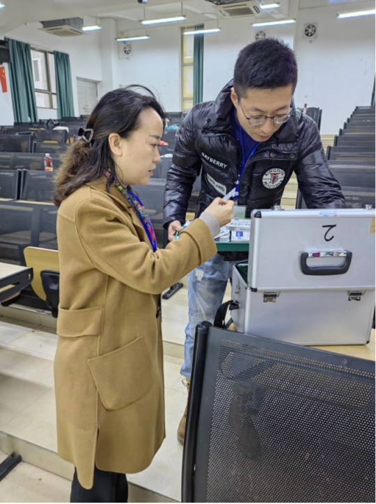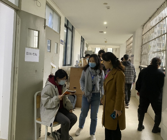 考试期间,后勤与国有资产管理处为预防冬季流行的呼吸道传染病,准备了大量口罩、手消液等防疫物资发放给有需要的师生。校医室配备了医疗服务小组,为考生身体不适或其他突发状况等提供服务保障。现代教育技术中心、教务处等诸多部门为考场准备、视频监控等做了大量准备,在考生背后默默付出,共同为考生创造良好的考试环境。