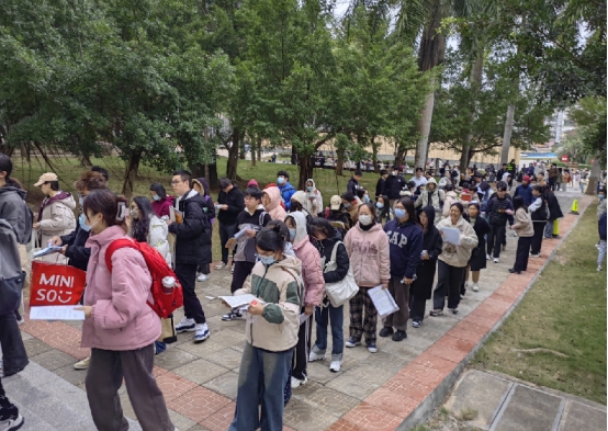 开考前,同学们已在考场前有序排队,或手捧书本,默记知识,拼搏到最后一刻;或气定神闲,信心满满,大步走进战场;在海南一年中最寒冷的季节,点燃了全国竞技的勇气和坚持。