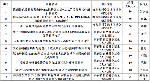 在学校统一领导和部署下,药学院围绕特色的热带药用资源包括南药黎药、海洋药物等开展基础与转化研究,鼓励教师积极申报国家和省部级科研项目。2022年的开局便在省级重点研发项目和自然科学基金申报中取得较好成绩,为药学学科建设和发展夯实的基础。