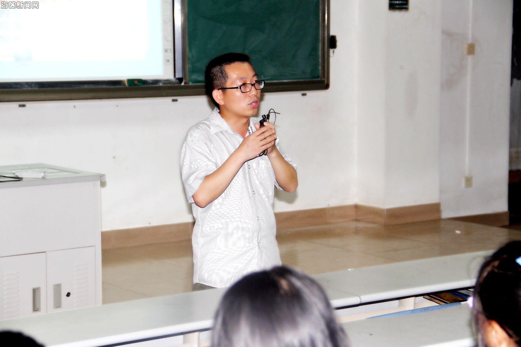 在师生互动环节中,新生纷纷踊跃向两位教授提出自己对专业以及大学生活的困惑。两位教授都一一认真地进行解答,希望能够消除他们心中的疑虑。李教授表示,它山之石可以攻玉,每个人都有自己的学习方法。只要肯付出,就会有收获。他还寄语同学们:“天行健,君子以自强不息;地势坤,君子以厚德载物。”
