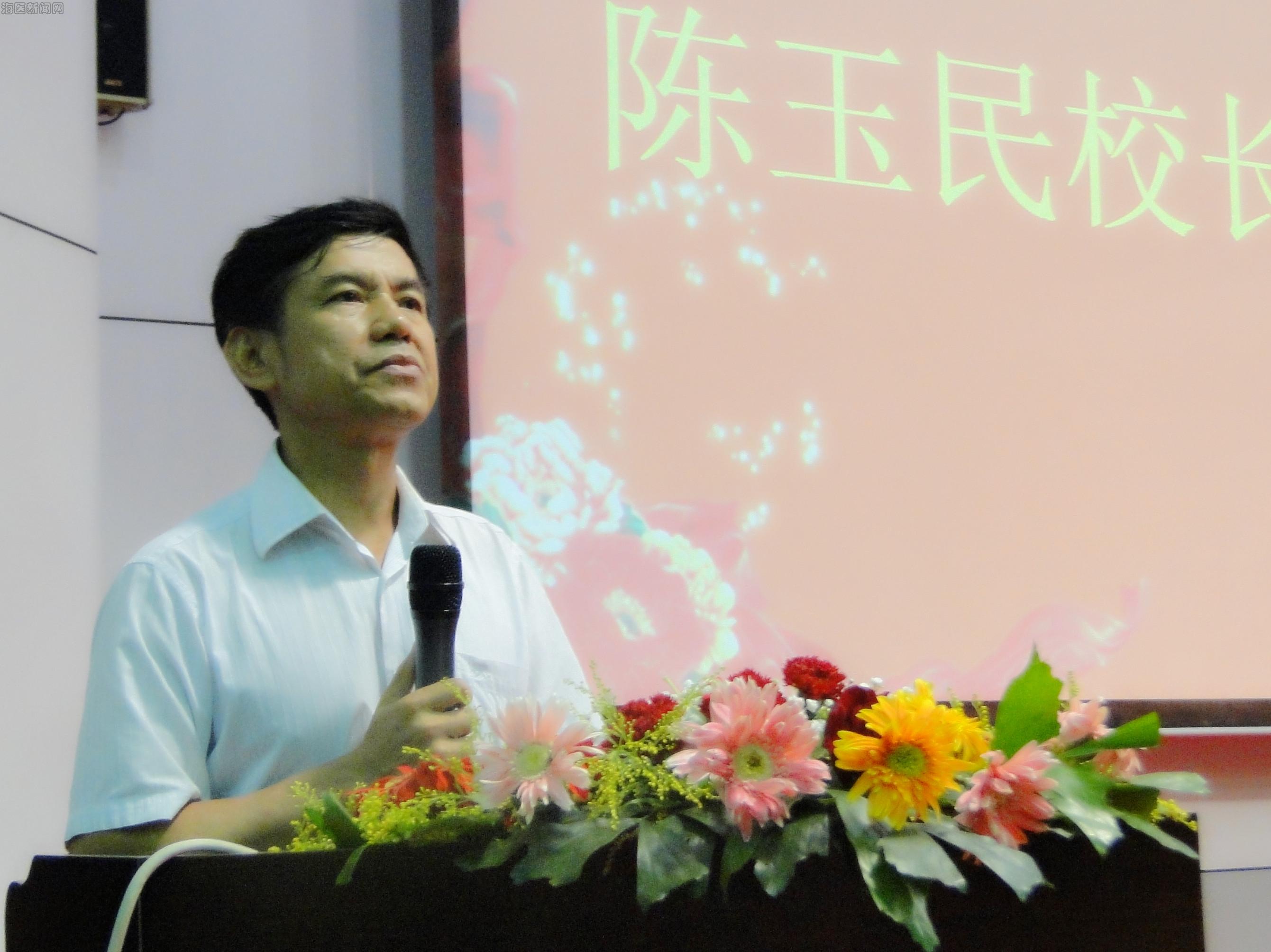 紧接着,陈玉民副校长致辞。他首先肯定了药学院和谐的党政班子、优秀的教师团队和出色的师生表现。他说,药学院成立12年来,在学校各项工作中争创佳绩,特别是在学校申硕工作中付出了艰辛的劳动,为学校教学工作作出了贡献。他将药学院的特点概括为“三高”,即“师生综合素质高”、“毕业生就业率高”“用人单位对毕业生评价高”。他说,药学院开展的活动丰富多彩,是培养人教育人的良好平台,学生们也在国家级、省级比赛中获得了不少奖项。最后,他以药学院的优秀毕业生陈磊、徐芳芳等为例,鼓励同学们以他们为榜样,在药学院这个大集体中,在药学院优秀团队的率领下,学会“做人”,提高自身综合素质,提升就业竞争力。