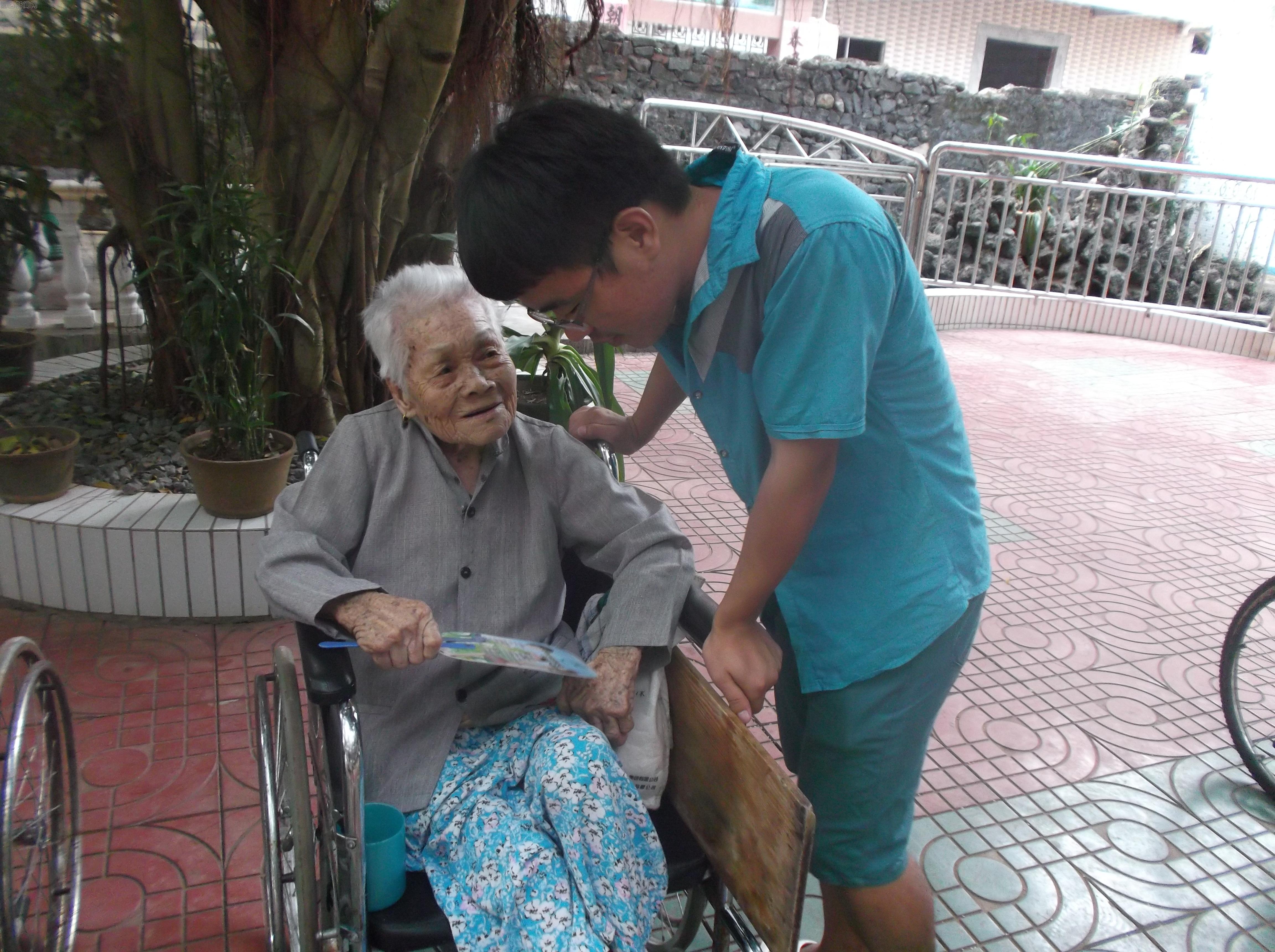 据此次前往公寓的我院负责人介绍,在老年公寓里居住着100多名老人,年龄最大可达104岁。待志愿者们到老年公寓之后,首先热情地慰问老人们,并献上带来的水果,食物,饮料等慰问品,老人们笑不拢嘴。随后,在负责人分配好工作之后,志愿者们做起了自己的工作。有的同学和爷爷奶奶们聊天,但因为爷爷奶奶们年纪都大了,说话有些难以理解,加上这的爷爷奶奶大多是当地海南人,都说有各种方言,以至于志愿者们大都听不们懂他们说的话。尽管如此,当爷爷奶奶们亲切的拉着志愿者们的手并说着自己内心的感受时,大家都会坚持听完奶奶们的话,纵使一句也不懂;有的志愿者们就会为老人们捶捶背,捏捏腿。因为海南较潮湿,老人时常会腰酸背痛,尽管手法不是很娴熟,但爷爷奶奶们还是很开心;还有的志愿者喂他们吃饭。有些老人生活上不能自理,虽然公寓里有负责人,但还是忙不过来。