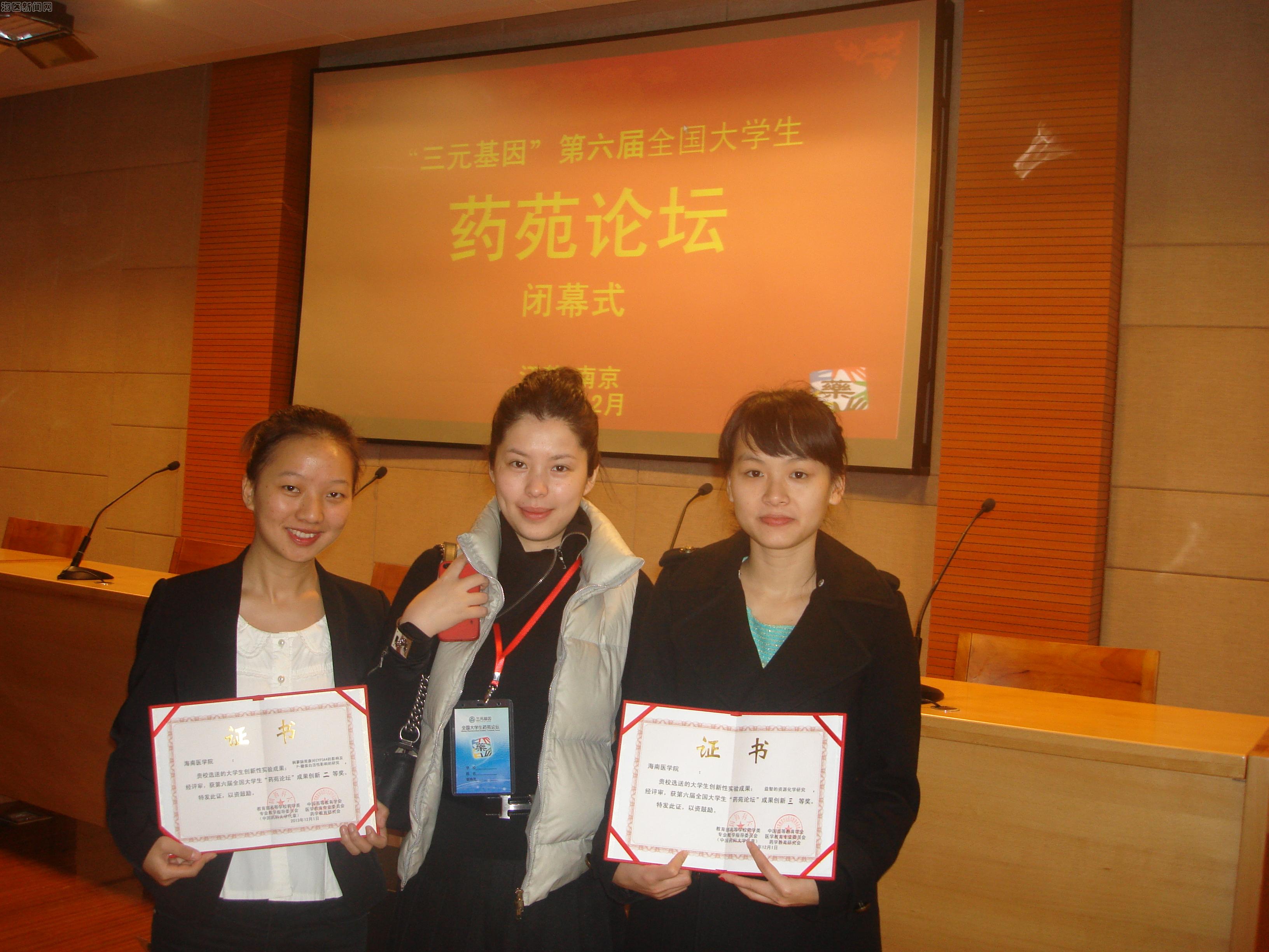 来自中国药科大学、沈阳药科大学、北京大学、复旦大学、四川大学等42所全国知名医药类高校的80余名选手参与此次竞赛。此次竞赛分论文评阅及现场答辩两部分。我院参赛选手2010级药学本科班晏灵莉、2010级中药学本科班林巧梅2位同学经过激烈的角逐,分别荣获二等奖、三等奖。