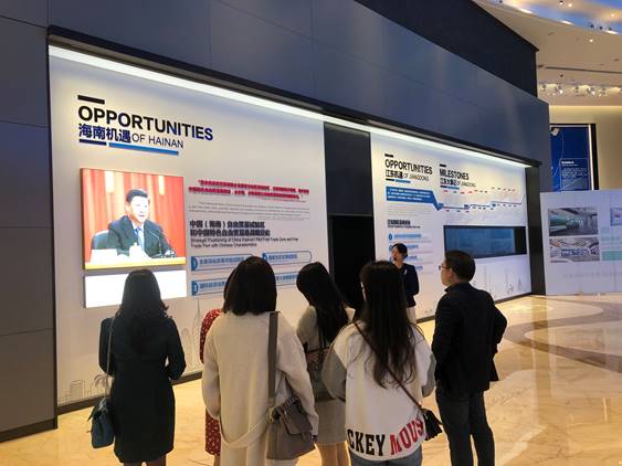 全体党员前往海口江东新区展示中心进行参观,在工作人员的解说和引导下,先后参观了“先谋后动”、“总体规划”和“规划亮点”等展区,通过感应移屏技术和无边际裸眼3D智慧沙盘,全方位、多角度了解江东新区的发展历程、美好蓝图及在海南自贸港建设中的独特优势。