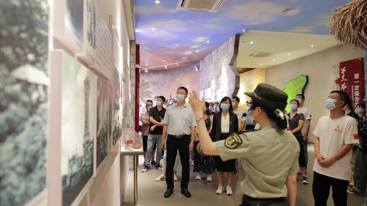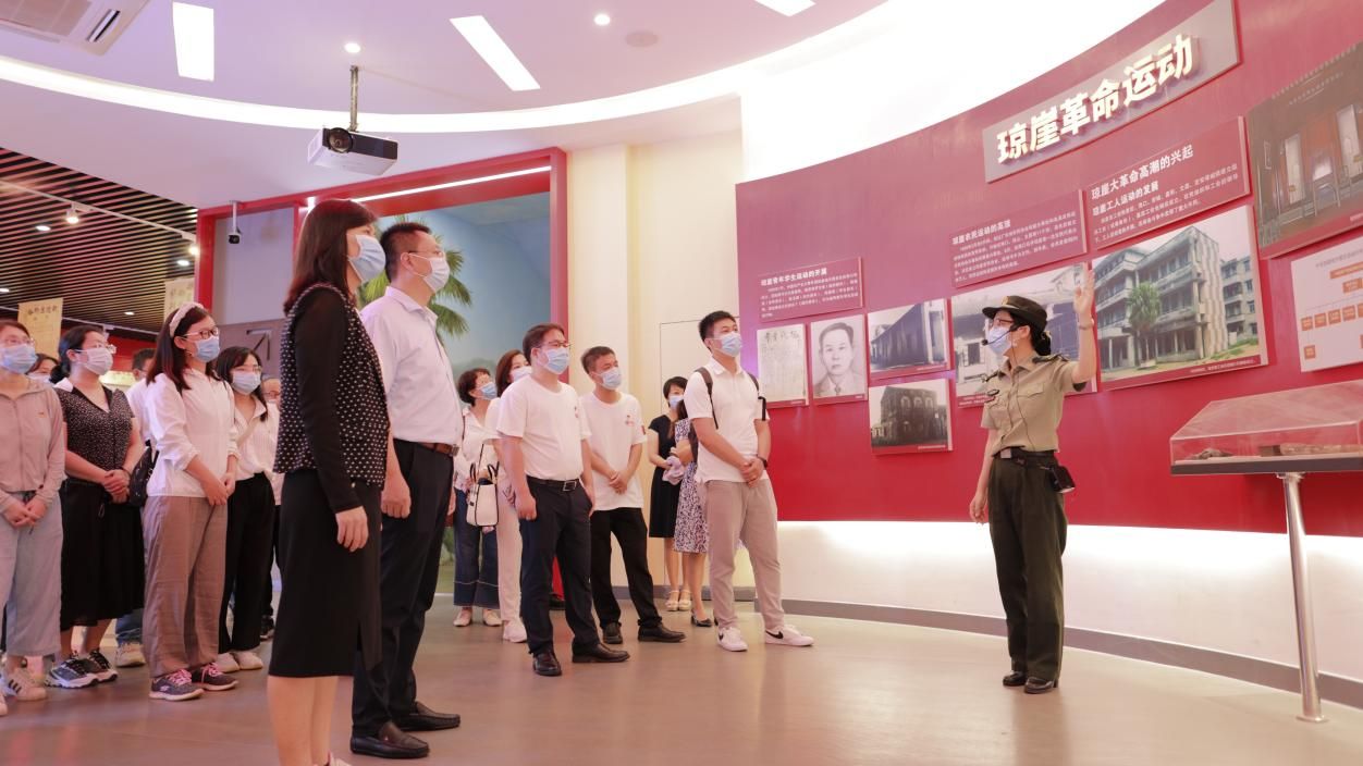 随后全体师生前往琼崖革命斗争历史展区实地参观学习。母瑞山革命根据地是土地革命战争时期中共琼崖特委创建的中心革命根据地,是琼崖特委、琼崖苏维埃政府、琼崖红军独立师师部曾长驻于此,领导和指挥琼崖人民和琼崖红军与敌人开展英勇卓越的革命斗争,被誉为琼崖革命的摇篮。通过讲解员的详细讲述及细致观看展区里的图片、雕塑及文字资料,深入回顾了琼崖革命“23年红旗不倒”的历史、精神内涵与传承和一批琼崖革命先烈的伟大光辉事迹。