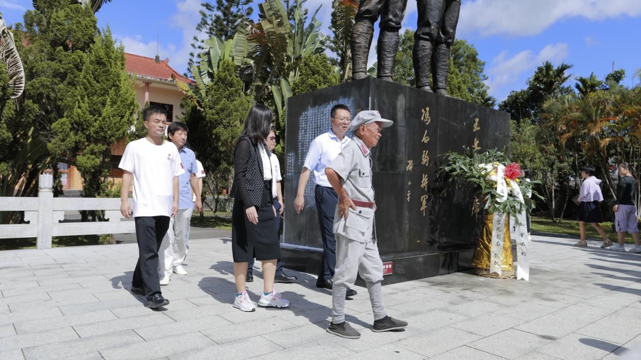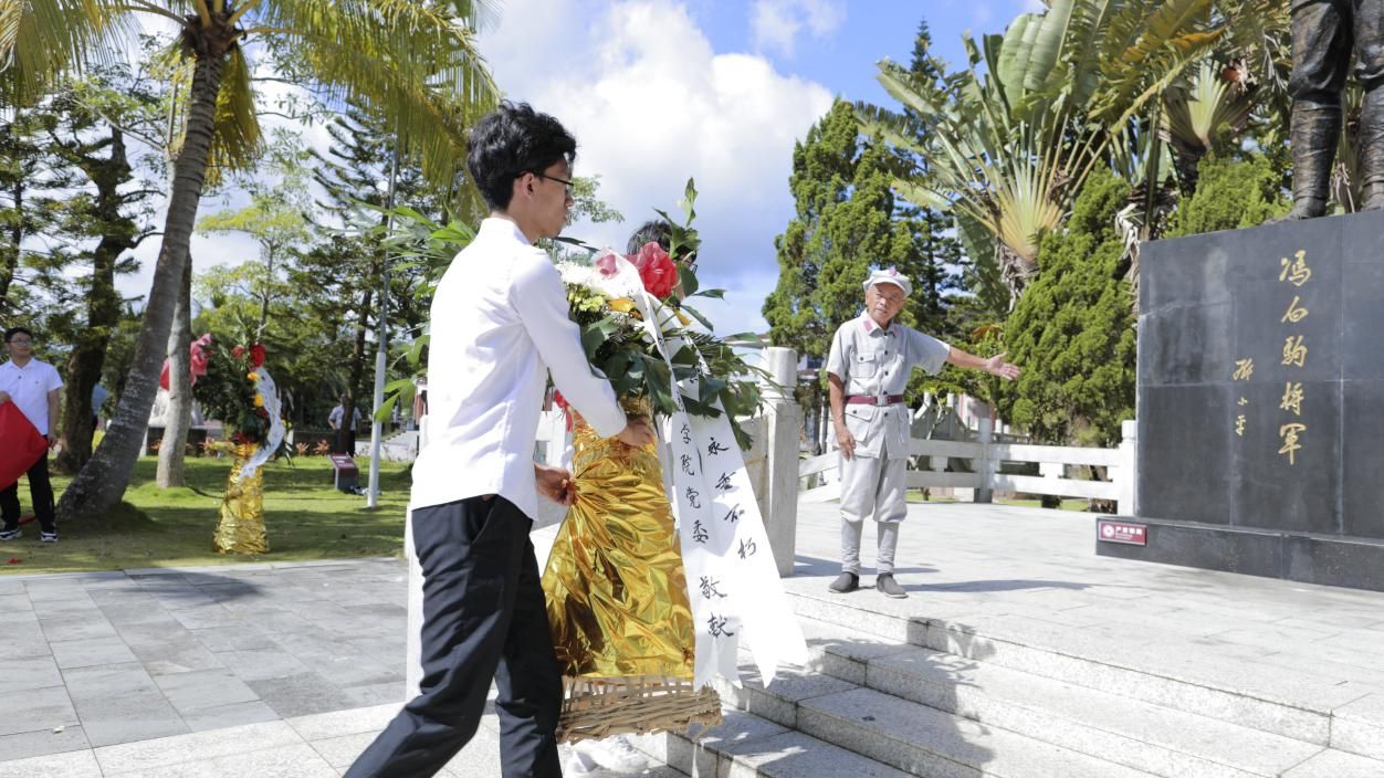 烈士纪念碑巍然屹立,绿树环绕,庄严肃穆。在雕像前,全体参会师生面向革命先烈王文明、冯白驹雕像行三鞠躬礼并默哀,接着药学院党委书记王武钢、院长王艳丽上前神情庄重地整理花篮上的白色缎带,全体在场人员向革命烈士敬献花篮,大家徐徐绕行,瞻仰烈士纪念碑,寻访烈士足迹,缅怀革命先烈的不朽功绩,弘扬伟大的琼崖革命精神。接着由药学院党委书记王武钢领誓,他带领全体师生党员面对鲜红的党旗重温入党誓词,大家高举右手、握紧拳头,庄严宣誓,缅怀先烈活动进一步坚定了全体党员领导干部理想与信念,激发了爱国主义情怀,增强了社会责任感,同时引导帮助师生树立正确的世界观、人生观、价值观,坚定理想信念、培育高尚情操。