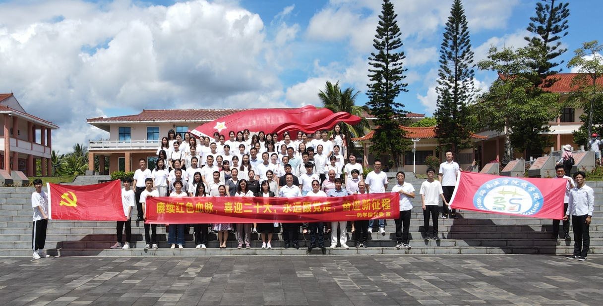 药学院全体党政领导班子成员、全体教职工党员、全体学生党员及预备党员、三级科室主任、教师代表、民主党派代表及无党派代表于2022年6月25日,到校外母瑞山革命根据地纪念园开展庆祝七一、党委理论学习中心组第五次学习会(扩大)暨学院“能力提升年”教育实践活动“赓续红色血脉,喜迎二十大,永远跟党走,奋进新征程”主题党日活动。进一步铭记琼崖革命光辉历史,传承“母瑞山精神”。母瑞山革命根据地位于海南省定安县南部地区,被誉为琼崖革命的摇篮,于1928年、1932年两次成功保存革命火种,创造了海南革命“23年红旗不倒”的奇迹。