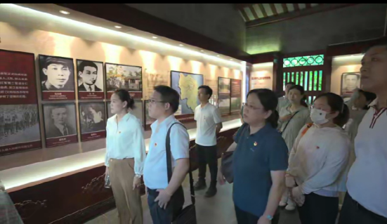 全体党员跟随讲解员步伐,追寻先烈足迹,重走红军路,唱红色歌曲,感悟革命历史。