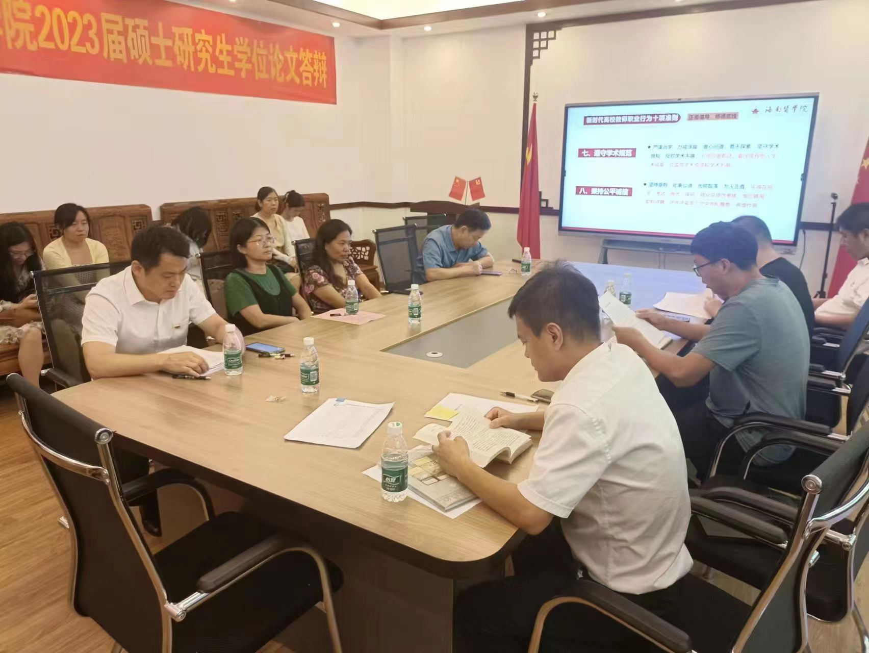 会议伊始,由药学院党委副书记孔杜林进行了海南医学院药学院师德集中学习教育的党课;接着依次由药学院党委委员、副院长张小坡传达学习了《习近平新时代中国特色社会主义思想专题摘编》中的教育是国之大计、党之大计(175-182页);药学院纪委委员邱军强传达学习了《海南医学院教师行为准则》;药学院纪委委员罗喻超传达学习了《海南医学院师德考核实施办法(试行)》及《海南医学院年度教师师德考核评价标准表》;接着由学院办公室工作人员侯杰传达学习了《海南医学院师德失范行为处理办法(试行)》。最后药学院党委副书记孔杜林做总结发言并作相关工作部署。