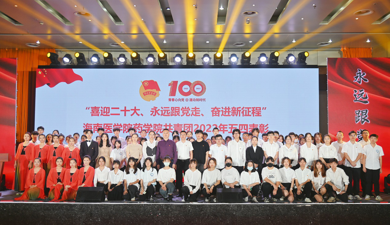 为纪念五四运动及庆祝共青团建团一百周年,激励广大青年团员继承发扬五四精神,药学院于2022年5月6日早上8点在国际报告厅召开海南医学院药学院共青团2022年五四表彰大会。莅临本次五四表彰大会的领导有:药学院党委王武钢书记、药学院团委闵喜军书记、药学院张雪映老师、贺冀豪老师、唐薇老师及药学院团员代表。