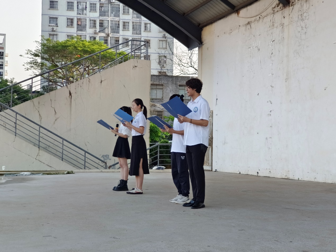 升旗仪式第三项,由高子明、李楠、孙重轮、李一凡四位同学带来诗歌朗诵节目:《廉洁教育之诗歌朗诵:烈烈清风》。《礼记·大学》有著:物格而后知至,知至而后意滅,意诚而后心正,心正而后身修,身修而后家京,家齐而后国治,国治而后天下平。四位朗诵者慷慨激昂的朗诵,使同学们感受到了作为新时代大学生,对廉洁应有的追求与坚定的决心。