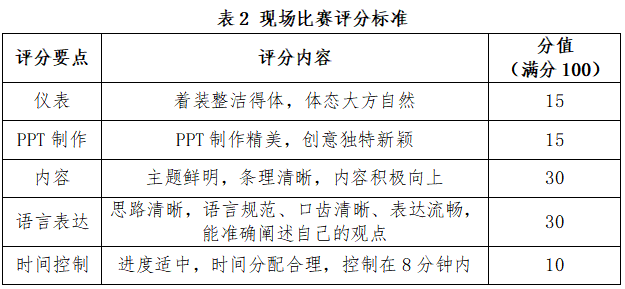 1.4月22日—4月25日,决赛选手制作读书分享PPT并做好赛前准备(评分标准见表2)。