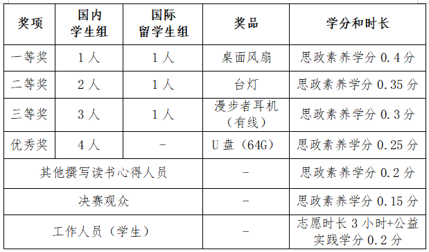 1.4月10日—4月17日期间,学生自行阅读经典书目,撰写读书心得,并将参赛报名表(附件1)和读书心得(附件2)Word和PDF版发送至指定邮箱(文件以“国内学生组或国际留学生组)+阅读书目+姓名”命名)。