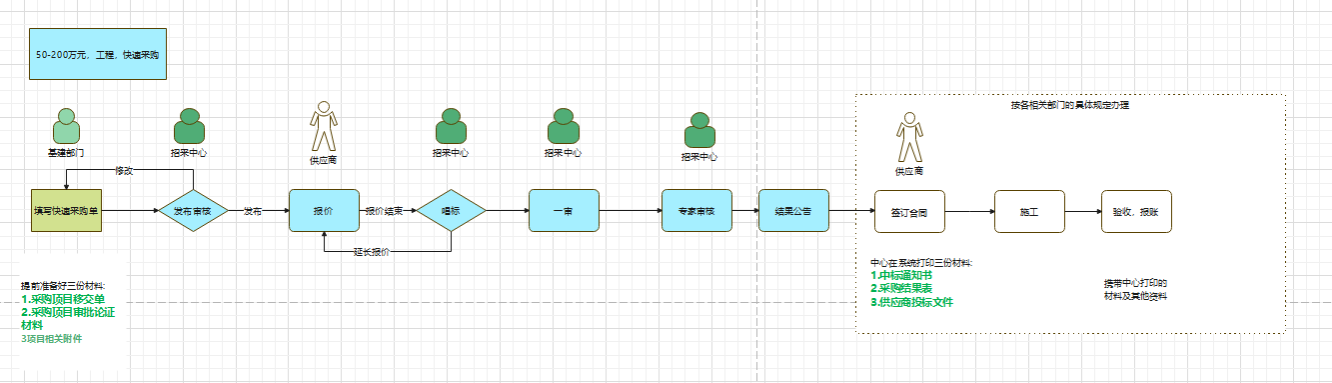 导航痕迹 首页 服务指引 业务交流 正文 50-200万工程项目快速采购流程图 发布日期:2022年06月17日 17:23 阅读次数: 文件下载:50-200万工程项目快速采购流程图.png 附件【50-200万工程项目快速采购流程图.png】已下载次