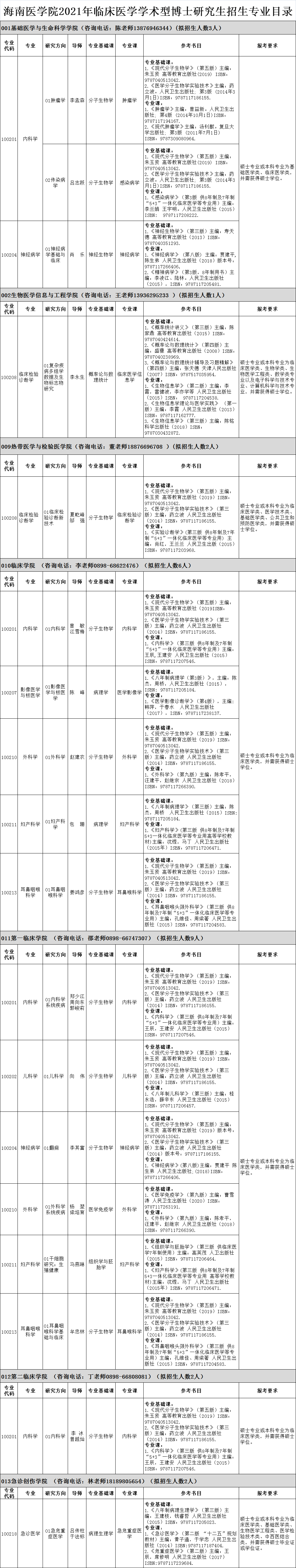 4.符合报考专业要求的学历、学位等报考条件,详见《海南医学院2021年全日制临床医学学术型博士研究生招生专业目录》备注栏信息。
