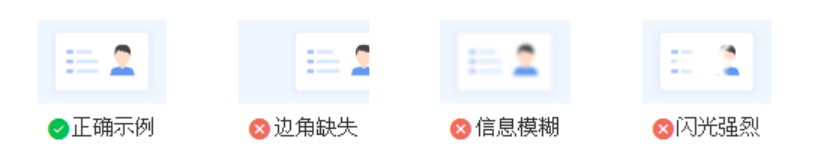 请确保身份证件边框完整,字迹清晰可见,亮度均匀,文字正向显示。