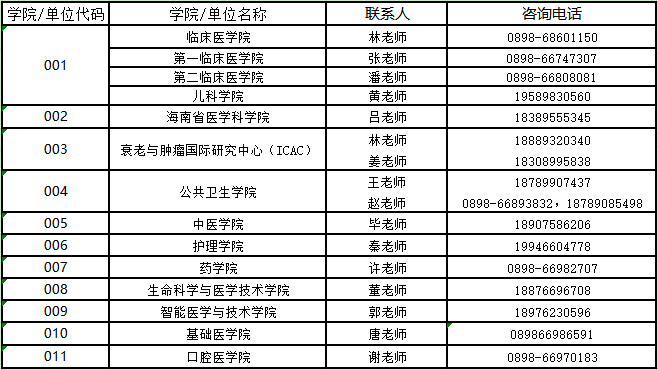各学院/单位招生咨询热线工作时间:8点-12点、15点-18点