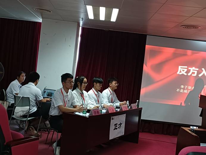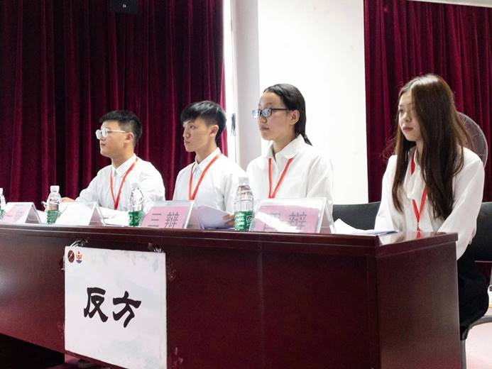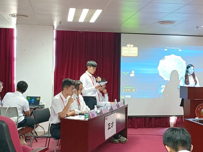 总结陈述阶段,各晋级队伍旁征博引,参赛队伍乘风破浪,气势如虹,相互间进行了激烈的交锋,观赛学生热情参与,互动提问环节更是将现场气氛活跃起来。最终比赛在裁判的公平打分反方获胜落下帷幕。