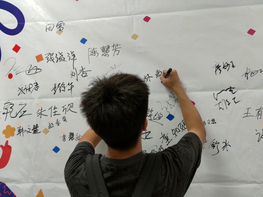 晚会开始前,进行了幸运转盘、毕业生签名和毕业献礼三个活动。参与互动,赢取转盘抽奖机会,小小的礼物,在晚会开始前为同学们带来了大大的惊喜与欢乐。毕业生们在签名墙上写下自己的姓名,拿上学院为他们准备的精美的毕业礼物和低年级同学们手写的毕业贺卡,为四年的大学时光画上一个圆满的句号。