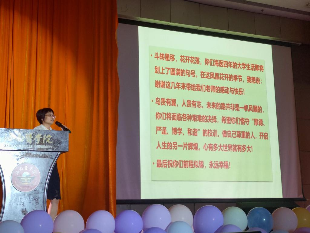 在晚会中场,毕业生代表姜铭惠受邀讲话,姜铭惠同学对四年时光作出了总结,向毕业生们送上最诚挚的祝福,同时勉励学弟学妹们努力学习,热爱生活,不负大学的四年时光。