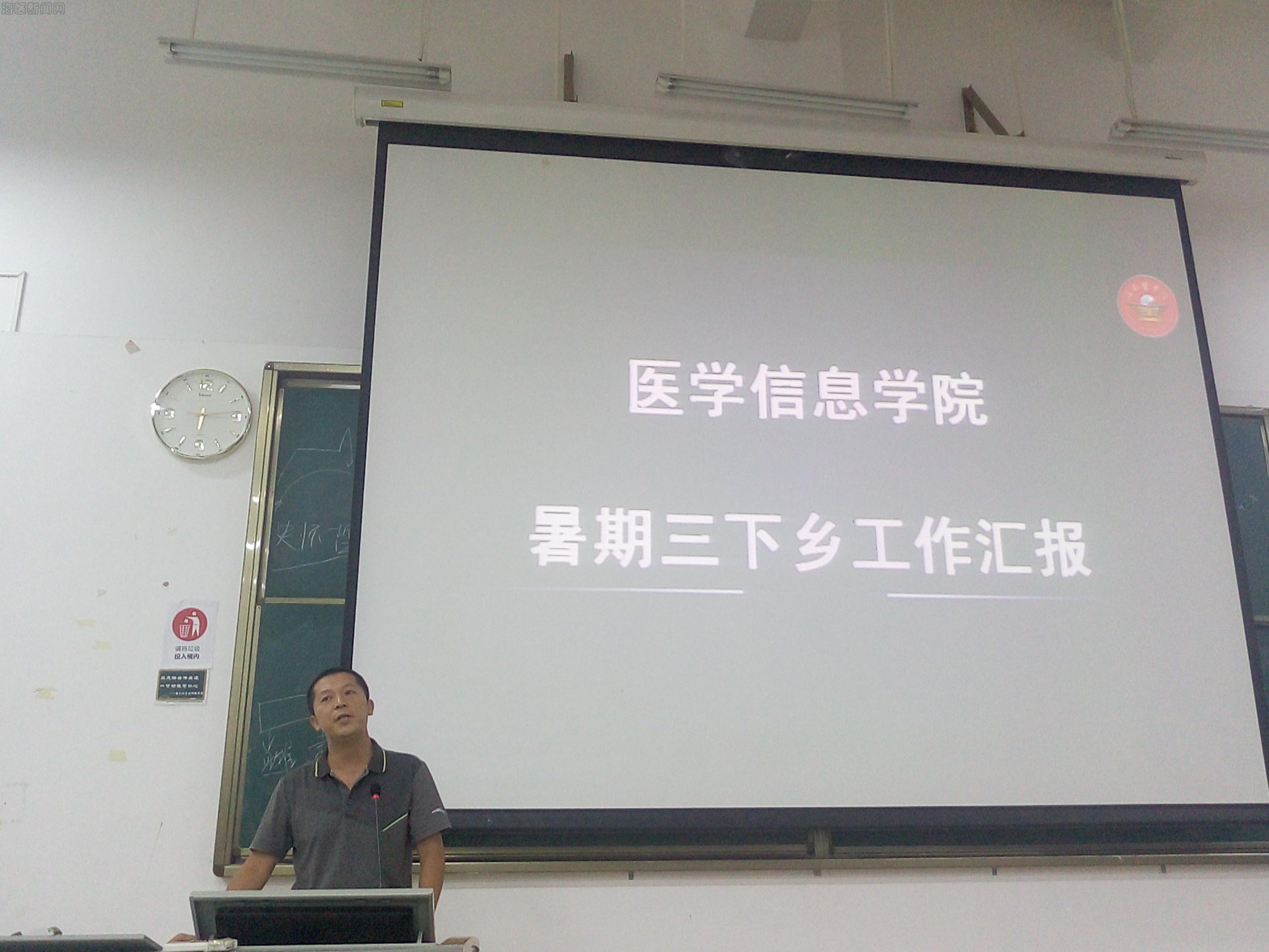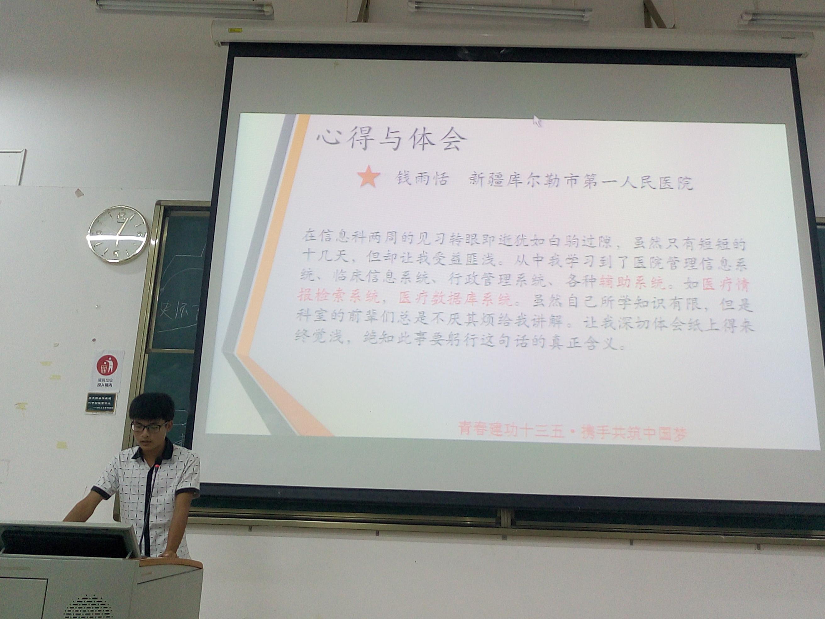 9月29日,我院在4-209举行“医学信息学院暑期三下乡工作汇报交流会”。出席本次会议的有学院党总支书记岑桑,团委书记王鹏,吕倜然和穆天强老师,我院全体同学共240余名参加了此次会议。会议由蔡刘璐同学主持。