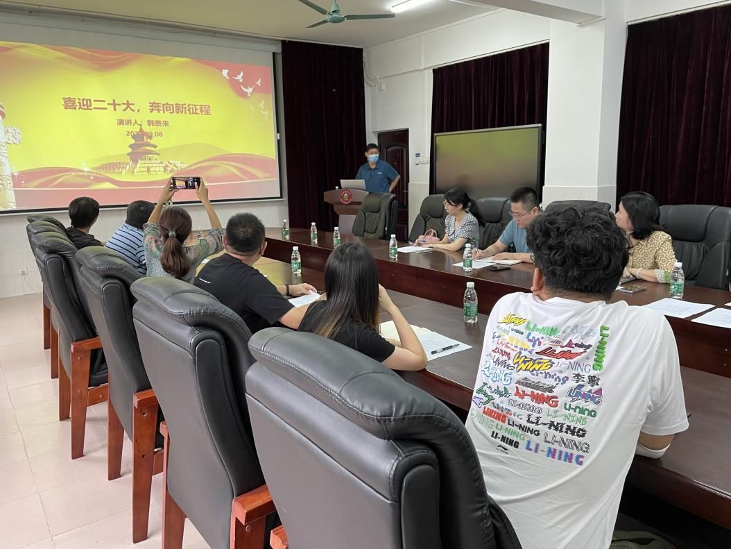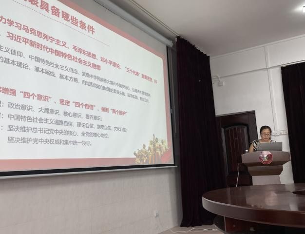 最后,第四党支部书记王丽美同志上台讲党课。王丽美同志以当前形势下怎样更好地做一名优秀的共产党员为党课主旨。王丽美同志介绍了即将召开的有关党的二十大的相关信息,以及大会的重要意义。党课中指出,我们党员要做到四讲四有,即讲政治、有信念;讲规矩、有纪律;讲道德、有品行;讲奉献、有作为。