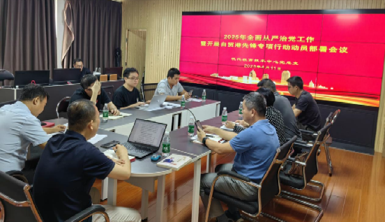 为深入贯彻落实全面从严治党要求,增强基层党组织政治功能和组织功能,积极响应省教育工委自贸港学校先锋专项行动号召,现代教育技术中心党总支于2025年4月11日上午,在润深楼六楼召开了“2025年全面从严治党暨开展自贸港先锋专项行动动员部署会议”。会议由党总支书记李春报主持,党总支副书记、中心主任黄斌文,纪检委员、中心副主任张经能,组织委员冯骞以及全体党员干部参加了此次会议。