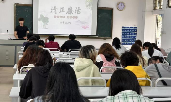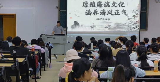 中医学院以学生班级为单位组织了主题班会,结合廉洁典型事例讲解廉洁文化价值,讲述廉洁文化故事,用榜样人物的道德品格和行为模范引导学生增强廉洁意识,践行廉洁承诺。此外,学生还通过经验分享等形式,感悟廉洁文化,厚植廉洁文化思想,引导学生扣好人生廉洁自律的第一粒扣子。如22中医二班举行了“厚植廉洁文化,涵养清风正气”为主题的班会;23中医二班举行了“清正廉洁”的主题班会;24中医三班举行了“廉洁在我心”的主题班会。