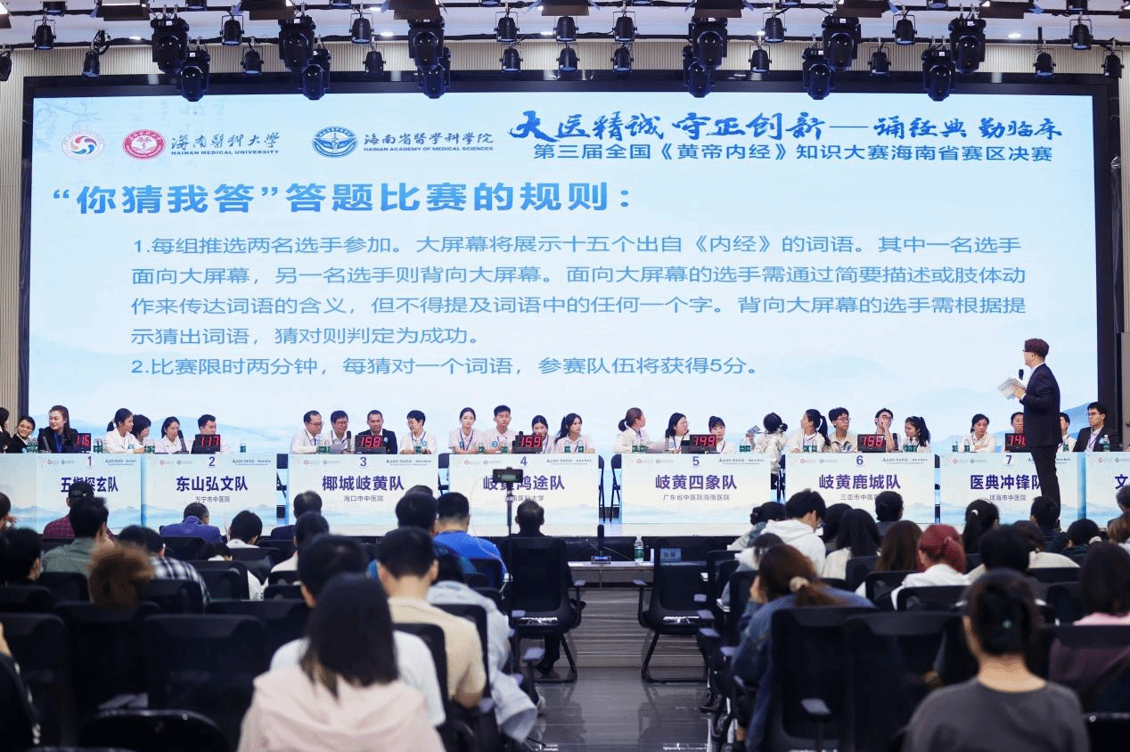 为深入学习贯彻习近平总书记关于中医药工作的重要论述,落实《中共中央 国务院关于促进中医药传承创新发展的意见》,推动中医药经典教育高质量发展,在海南自贸港国际化建设的蓬勃浪潮中,椰林飘香里裹挟着《黄帝内经》的千年墨香,2025年11月23日上午,第三届全国《黄帝内经》知识大赛海南赛区决赛在taptap点点官网城西校区立言厅正式开赛。本次大赛由中国教育电视台、中华中医药学会、世界中医药学会联合会等九家权威单位联合主办,taptap点点官网(海南省医学科学院)精心承办,以“大医精诚 守正创新 —— 诵经典 勤临床”为核心主题,既是中医药学子的知识竞技舞台,更是自贸港背景下传统中医文化“守正根脉”与“出海破圈”的生动实践,为海南中医药事业发展注入强劲动力。