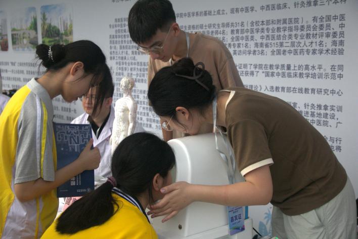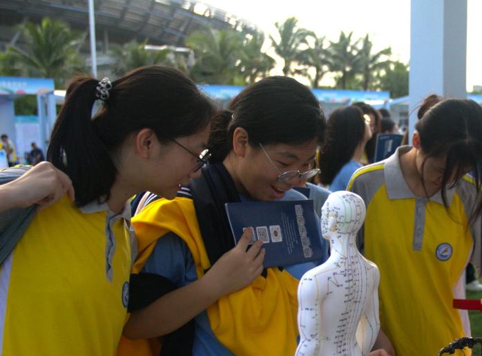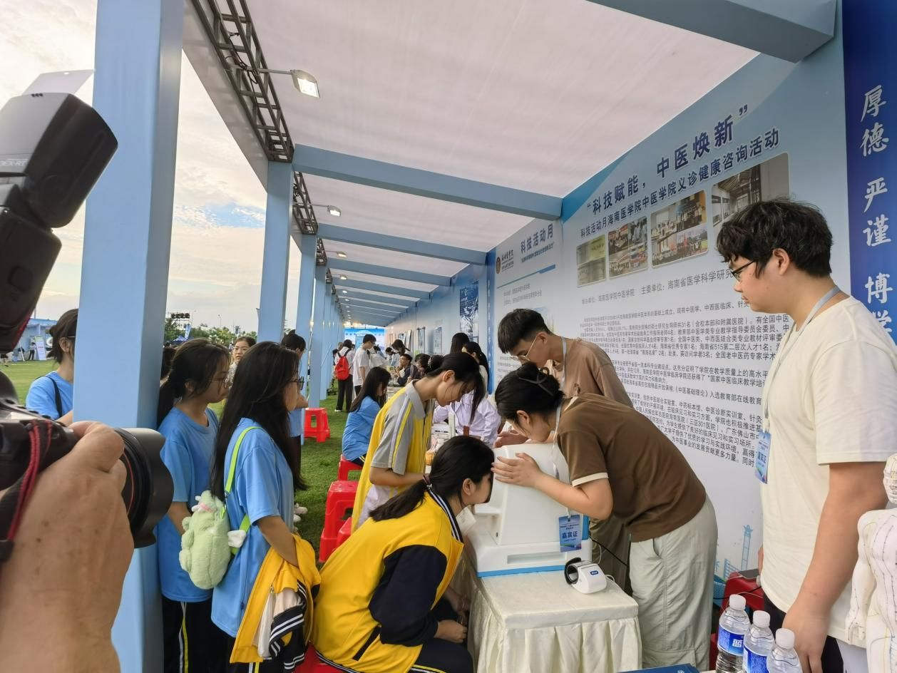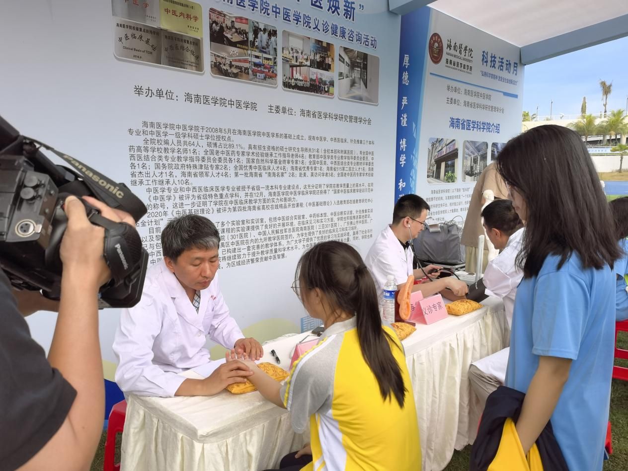 在启动仪式展会上,中医学院积极宣传海南医学院(海南省医学科学院),展示了校徽图案的书签等文创产品,开展了中医科普宣传、义诊和健康咨询服务,展出了中医四诊仪等科技产品,同时免费发放了防流感香囊等。此外,中医学院老师还向儋州当地中的高中生发放报考指南等招生宣传手册,积极向参加科技活动月的学生们介绍学校相关情况,欢迎广大学子报考taptap点点。