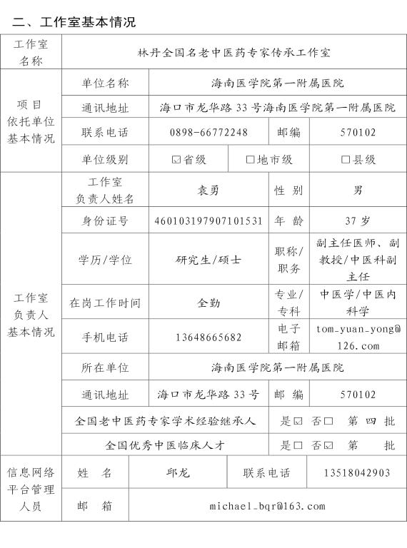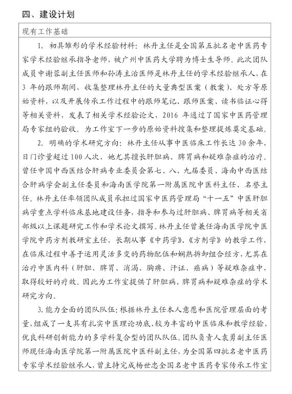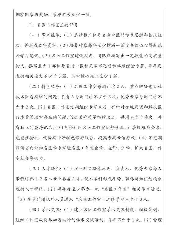 林丹名医工作室建设任务书