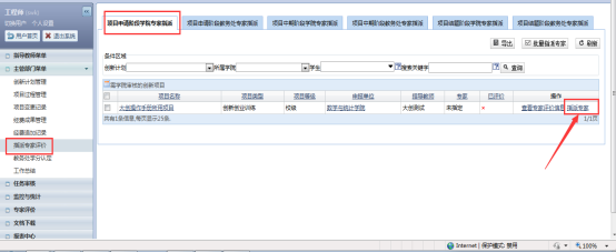 1、指导老师审核通过后,教务员在主管部门菜单——指派专家评价——项目申请阶段学院专家指派选项卡下能够看到指导老师审核通过的项目,如图: