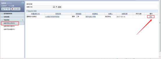 点击创新项目立项评价菜单,点击评价按钮,进行评价,如图: