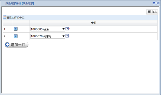 若添加多个专家则再点击添加一行按钮,添加后点保存,如图: