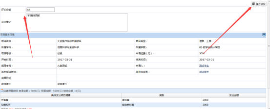 对项目进行评价,给出评价分数和评价意见后,点击保存评价按钮,如图: