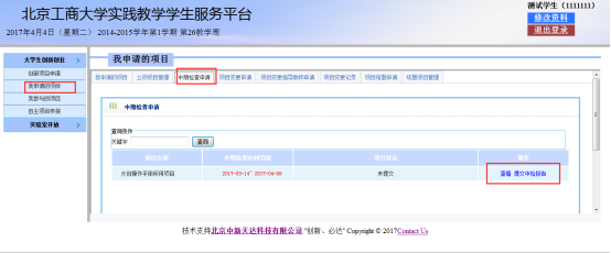 该项目在完成一定进度后,学生可以申请该项目的中期检查,等待审核,如图: