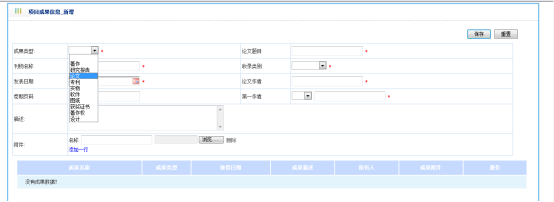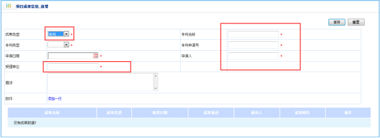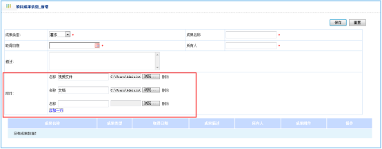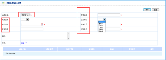 对该项目中所获得的成果进行添加管理,如图:
