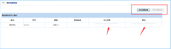 2、填写分工信息,保存结题申请: