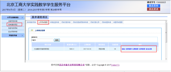 1、当项目完成到一定程度或者完成后,学生可以进行结题申请,如图: