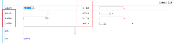 当成果形式为论文形式时,需要填写论文题目、刊物名称、收录级别、发表日期、论文作者、卷期页码、第一作者等信息,论文作者为参与写作论文的所有成员,而第一作者时论文的代表作者,如图: