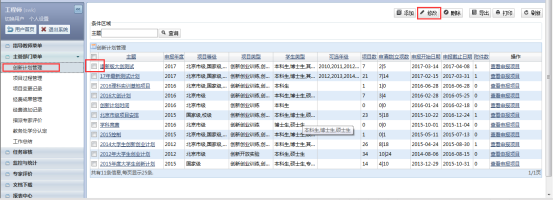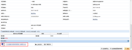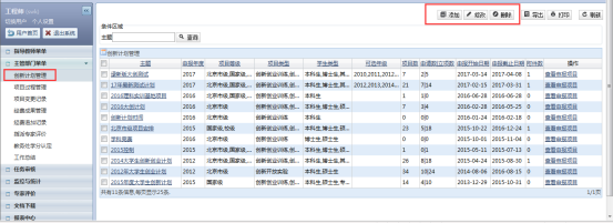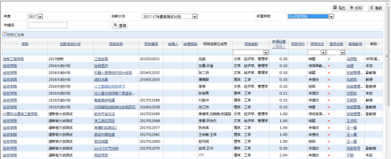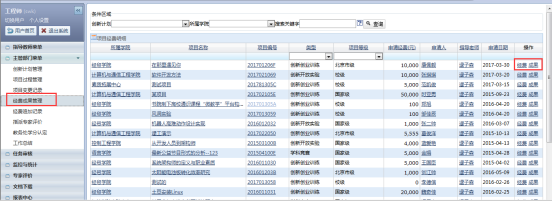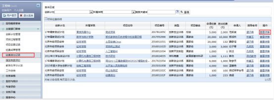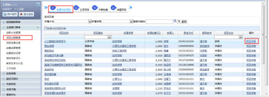 主管部门管理人可以在项目过程管理查看处于各个不同状态的项目的详细情况,比如项目名称、申请经费,指导老师,项目状态等,如图: