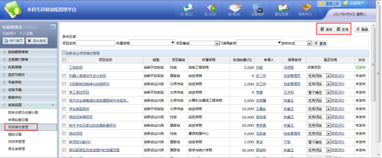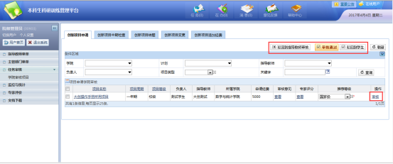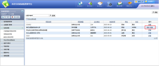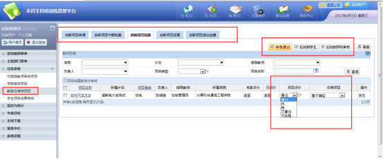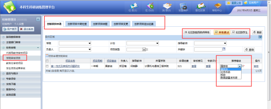 2、已通过指导教师审核的项目,下个流程到学院进行审核,如图: