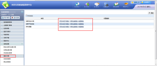 教务处管理员可以根据学校实际情况对大创不同类别设置模板,如图: