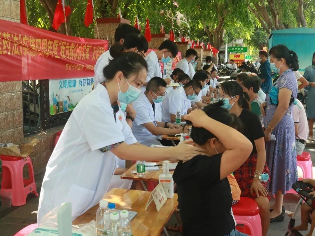 海南医学院中医学院的义诊老师们带领我院“医路同行”暑期志愿服务团队成员前往东方市中医院为当地居民展开义诊活动。本次义诊活动老师们都耐心倾听居民的主诉,并进行了详细的问诊以了解病情相关情况,通过切脉为义诊居民检查病情,在进行了仔细分析后为居民开处方,实行温针治疗等。此外,还认真解答了居民的困惑及叮嘱服用注意事项等,并给予了相关的针对性建议。