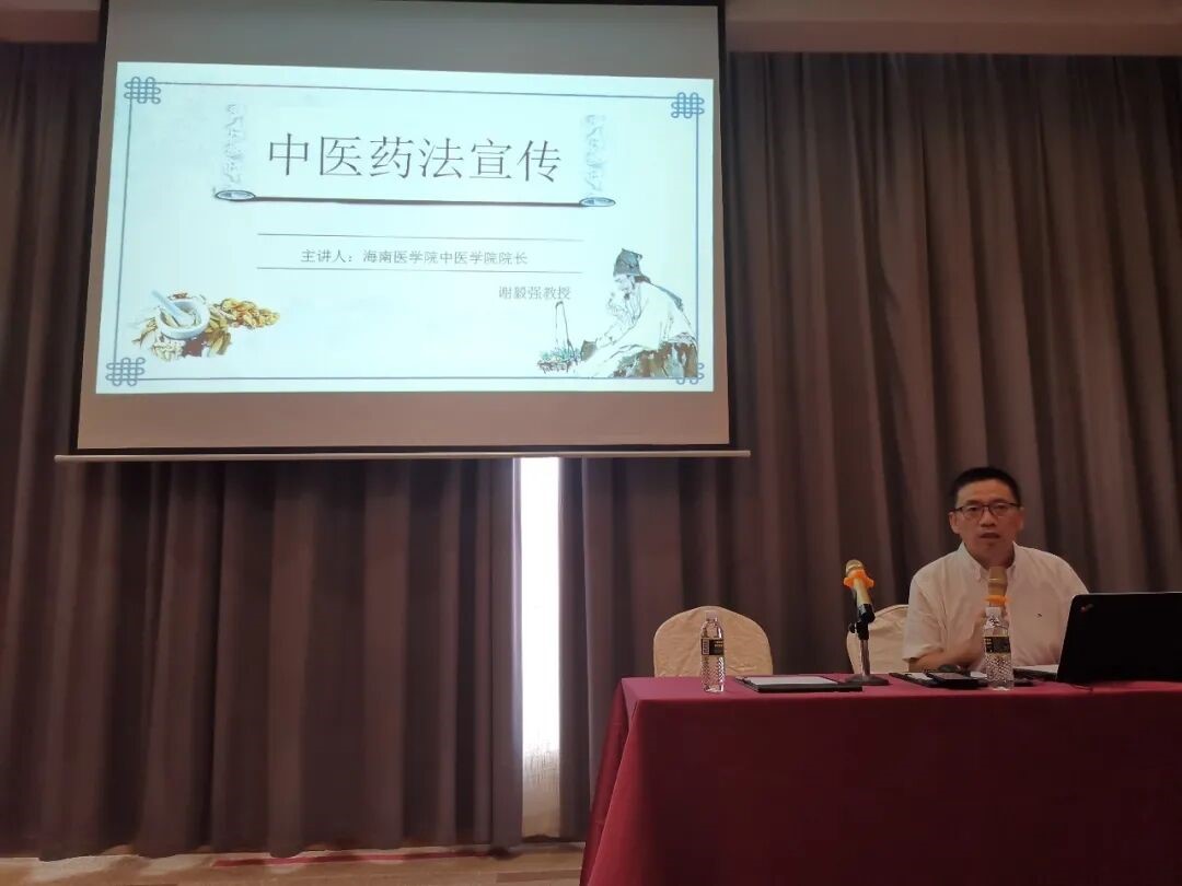 并且海南医学院中医学院院长谢毅强教授与我们团队进行了《中医药法》实施四周年的宣讲活动。谢毅强教授与海南省非物质文化遗产保护协会会长霍凯先生提出了“海南省中医药非遗类传统知识收集整理工作”符合双方对中医药传统知识保护的发展规律。最后谢毅强教授进行总结:《中医药法》的实施给民间中医提供很多平台,为中医药的传承与保护做出了很大贡献,也有利于积极吸纳社会力量,做到最大保护和传承中医中药。